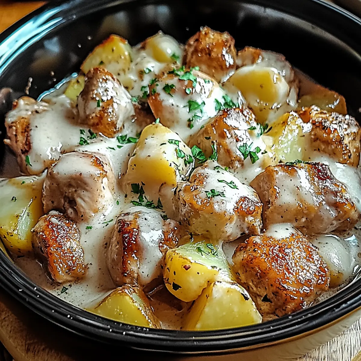 - Drizzle your creamy sauce over the chicken and potatoes, ensuring everything is beautifully coated.