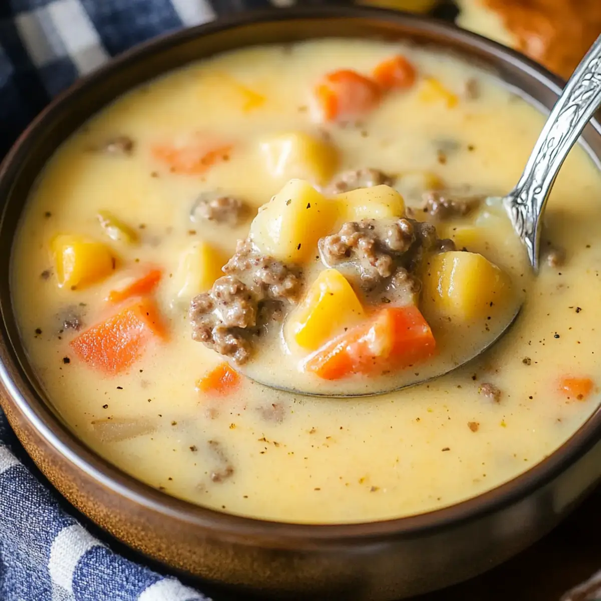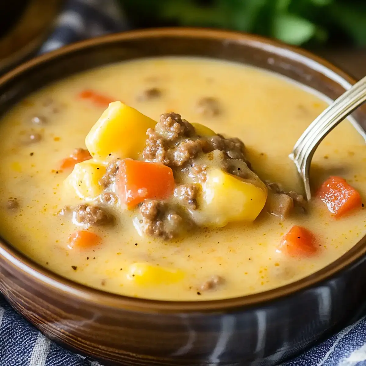 These Easy Crockpot Cheeseburger Soup preparations are perfect for busy home cooks looking to save time during the week! You can sauté the onion and garlic, cook the ground beef, and combine all the non-perishable ingredients (like the broth, potatoes, carrots, and diced tomatoes) up to 24 hours in advance. Simply refrigerate this mixture until you're ready to cook. When you're ready to enjoy your soup, add the beef and veggie mixture to the crockpot and cook on low for 6-8 hours or high for 3-4 hours. To maintain that creamy texture, stir in the heavy cream and cheese about 30 minutes before serving. Trust me, this way, you'll have a cozy, delicious meal with minimal fuss during your busy evenings!