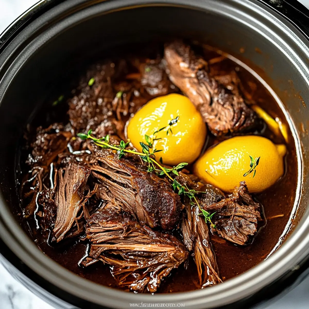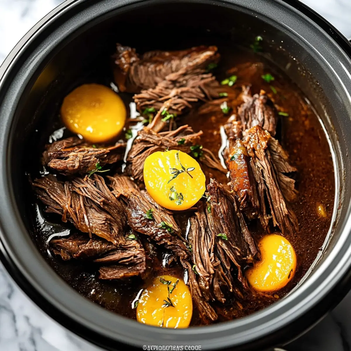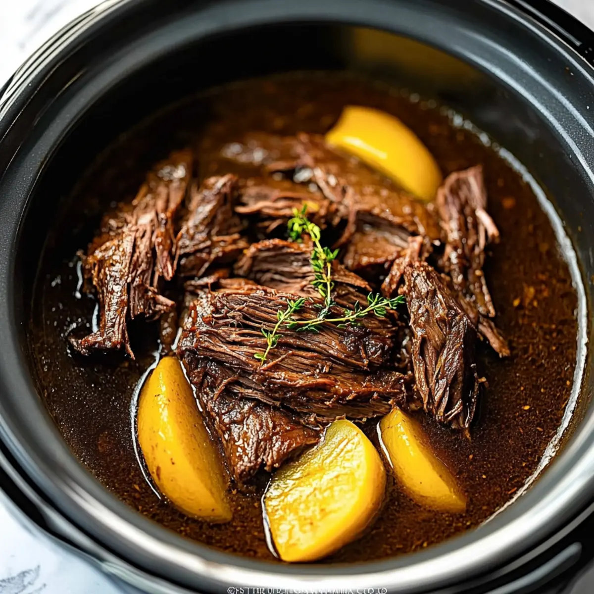 - Once cooked, shred the beef with two forks, mixing it back into the delicious juices. Serve it over your favorite sides and enjoy every comforting bite!