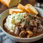 Slow Cooker Beef Manhattan is a cozy and comforting dish, perfect for busy days. It combines tender chunks of beef with rich gravy, served over fluffy mashed potatoes. This recipe is easy to prepare and allows you to let the slow cooker do most of the work. Whether you are feeding a family or looking for leftovers, it satisfies everyone's hunger. Plus, the garlic bread on the side adds a nice touch. Making this dish means you can enjoy a home-cooked meal without spending hours in the kitchen.
